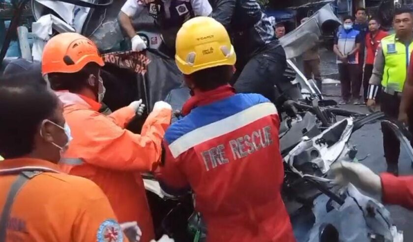 “Kepala truk pesok parah. Sudah ada petugas di lokasi, dan truk yang menabrak sudah ditarik mundur,” katanya.