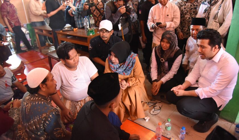 Emil Elestianto Dardak Wakil Gubernur Jawa Timur (Wagub Jatim) didampingi Mimik Idayana Wakil Bupati (Wabup) Sidoarjo mendatangi posko gabungan, tempat wali santri yang sedang menunggu anaknya ditemukan di balik reruntuhan, pada Kamis (2/10/2025).