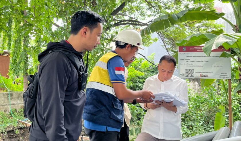 Eri Cahyadi Wali Kota Surabaya melakukan inspeksi mendadak (sidak) pengerjaan saluran, memastikan semua dikerjakan 24 jam.