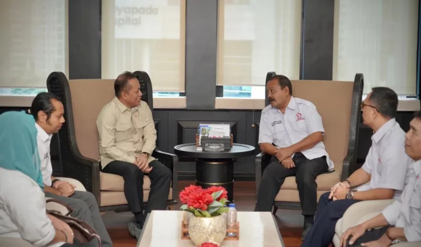 Ferry Juliantono (tiga dari kiri) Menteri Koperasi menerima audiensi pengurus Asosiasi Pedagang Kaki Lima Indonesia (APKLI) di kantornya di Jakarta, Kamis (26/2/2026). Foto: Antara/ Kemenkop