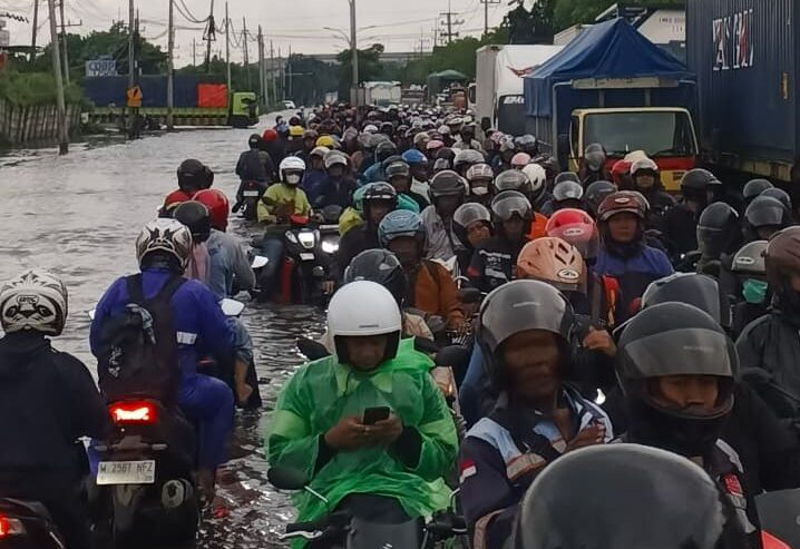 Jalur Surabaya-Gresik tepatnya di Jalan Tambak Osowilangun lumpuh sejak, Senin (16/2/2026) dini hari. Penyebabnya, akibat banjir rob yang menggenangi kawasan tersebut, diperparah curah hujan yang tinggi semalaman.
