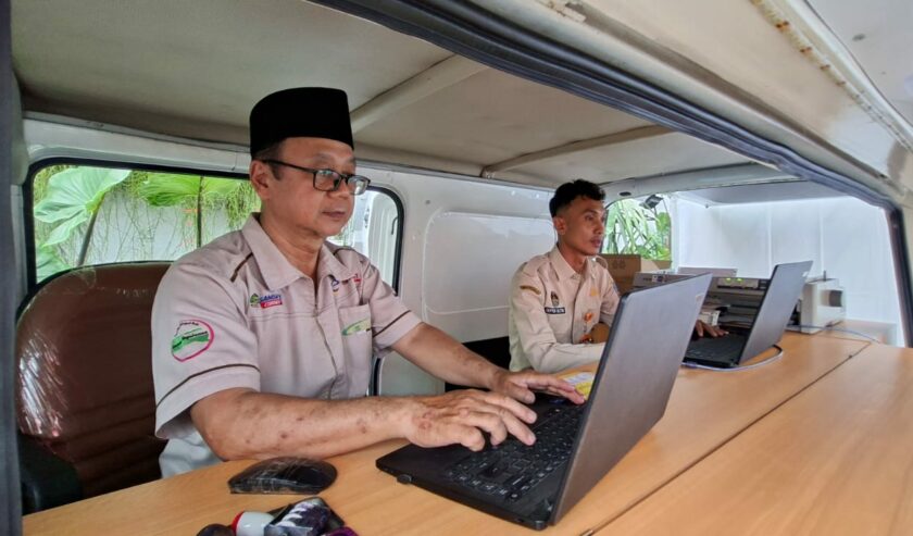 Muhammad Syaifullah Kepala UPT Pengelolaan Pendapatan Daerah (PPD) Surabaya Selatan mengatakan hanya perlu 2-3 menit untuk membayar pajak tahunan kendaraan saat JConnect Ramadan Vaganza 2026 di Balai Kota Surabaya.