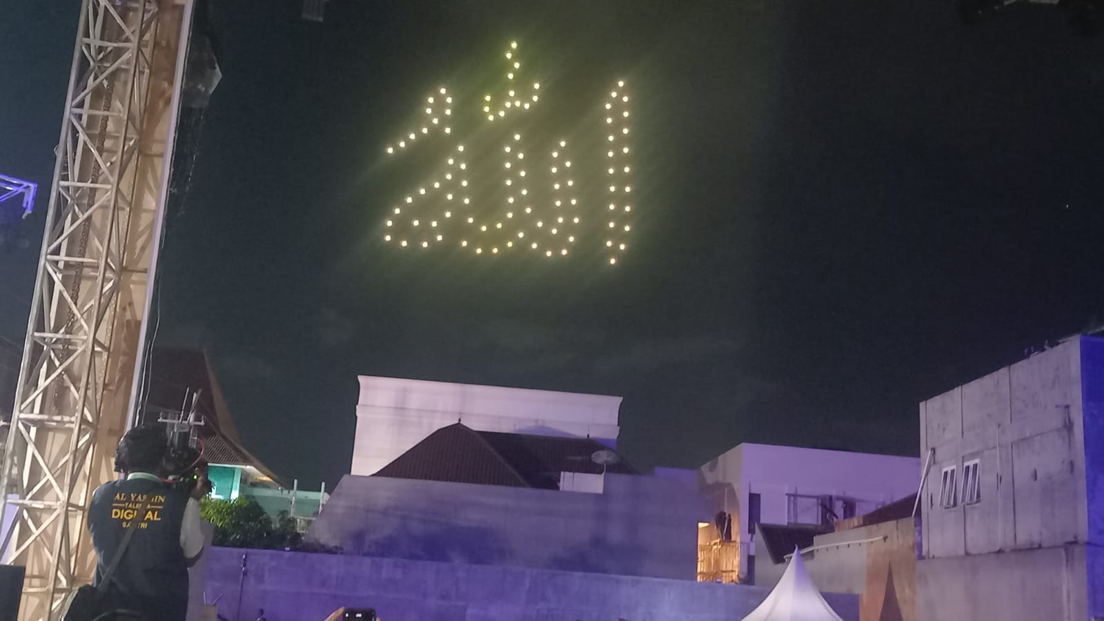 Konfigurasi 21 drone bertuliskan lafaz Allah dalam peluncuran program Talenta Digital Santri Pesantren Digipreneur Al-Yasmin Surabaya, Minggu (5/4/2026). Foto: Humas Pesantren Digipreneur Al Yasmin Surabaya.