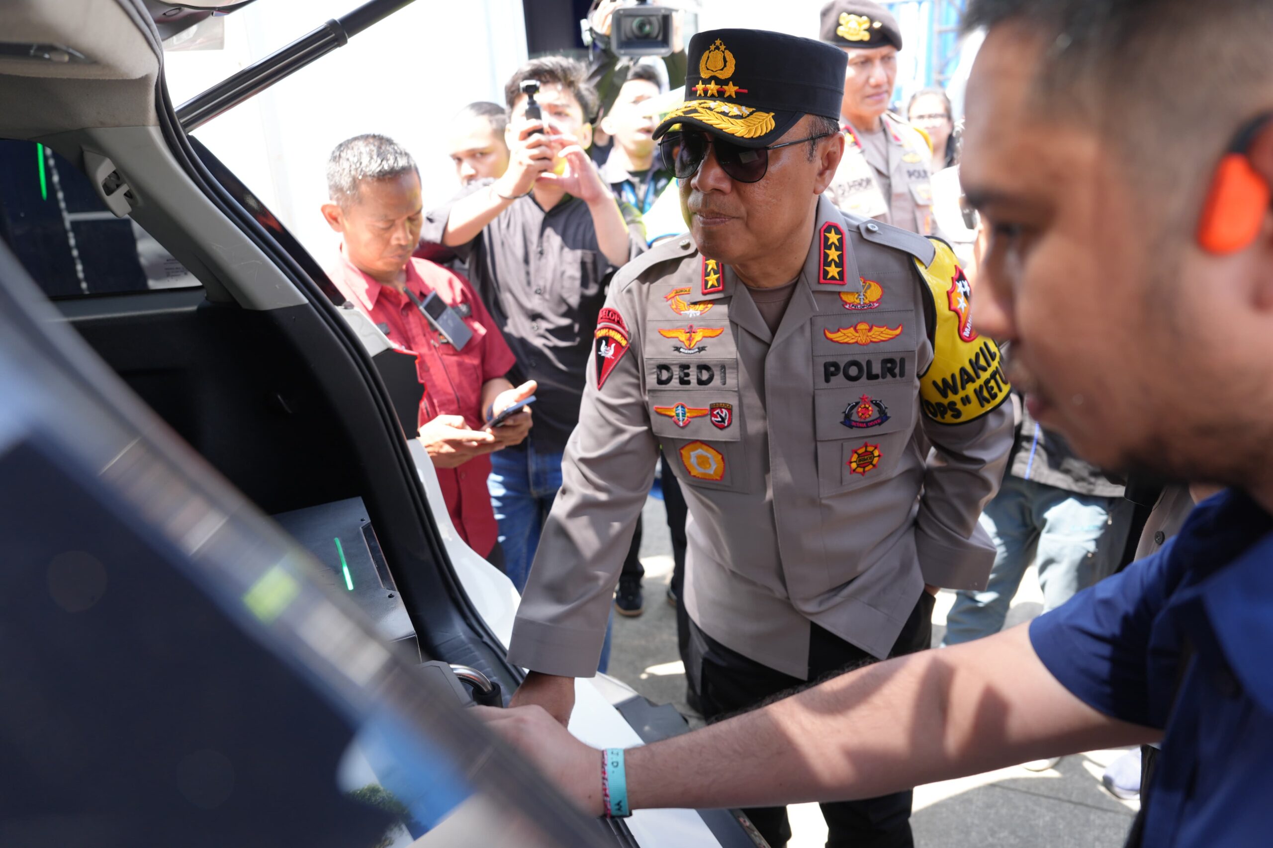 Komjen Pol. Dedi Prasetyo Wakapolri saat mengecek fasilitas Operasi Ketupat 2026 di kilometer 29 tol Jakarta–Cikampek, Sabtu (14/3/2026). Foto Humas NTMC