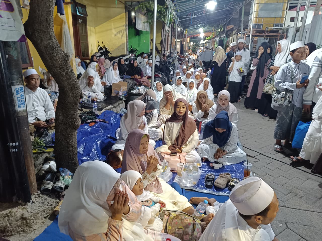 Jemaah Al Khidmah memadati sejumlah gang di dekat Pondok Pesantren Assalafi Al Fitrah, Surabaya dalan Haul Akbar pada Sabtu (24/1/2026). Foto: Risky suarasurabaya.net