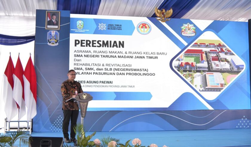 Dalam peresmian rehabilitasi dan revitalisasi sekolah tersebut dipimpin oleh Khofifah Indar Parawansa Gubernur Jatim di SMAN 1 Taruna Madani Pasuruan. (ris/saf/ham)