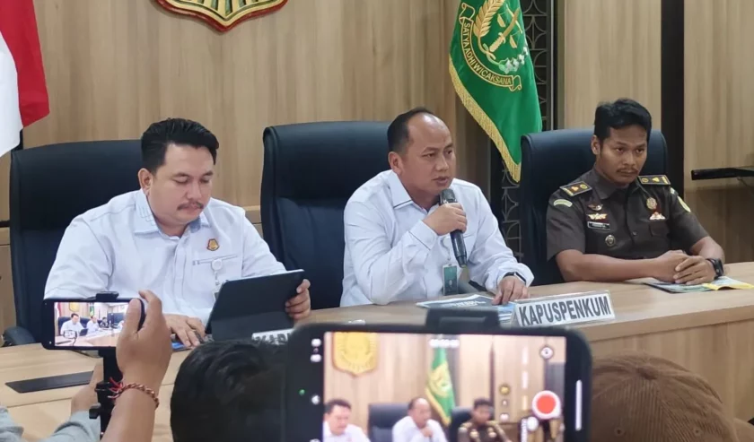 Anang Supriatna (tengah) Kepala Pusat Penerangan Hukum Kejagung memberikan keterangan pers di Gedung Puspenkum Kejagung, Jakarta, Rabu (31/12/2025). Foto: Antara