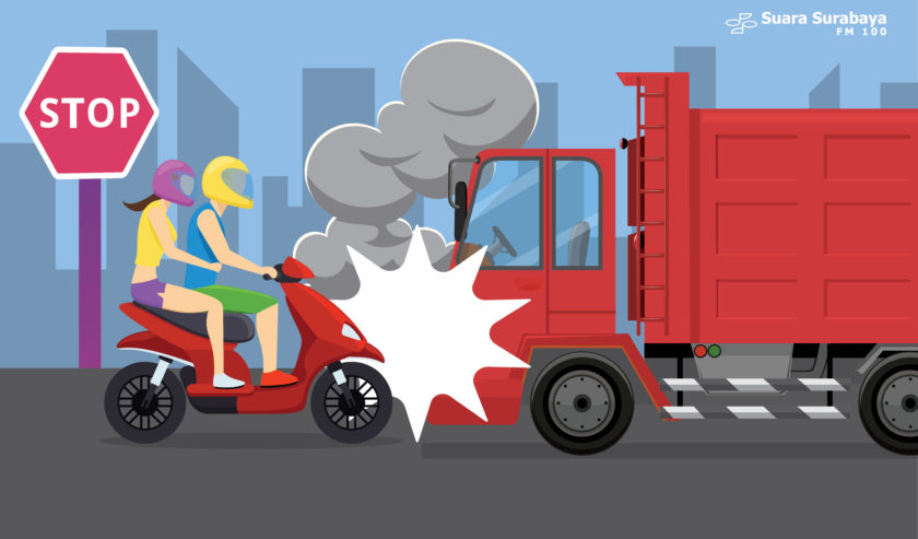 Dalam keterangannya yang diterima suarasurabaya.net, sepeda motor Honda Beat yang dikendarai SDN (17), warga Kedungrejo, Waru, Sidoarjo melaju dari arah selatan ke utara. Saat tiba di lokasi kejadian, kendaraan itu berbelok ke arah timur dan berserempetan dengan truk trailer yang dikemudikan M (55), warga Kenjeran, Surabaya, yang melaju dari arah barat ke timur.