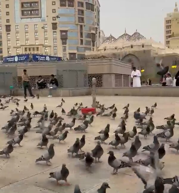 Usai salat, pemandangan burung merpati yang kerap disebut “merpati Aisyah” terlihat di sekitar pintu 310. Kehadiran burung-burung tersebut menjadi salah satu ikon yang menyapa jemaah.
