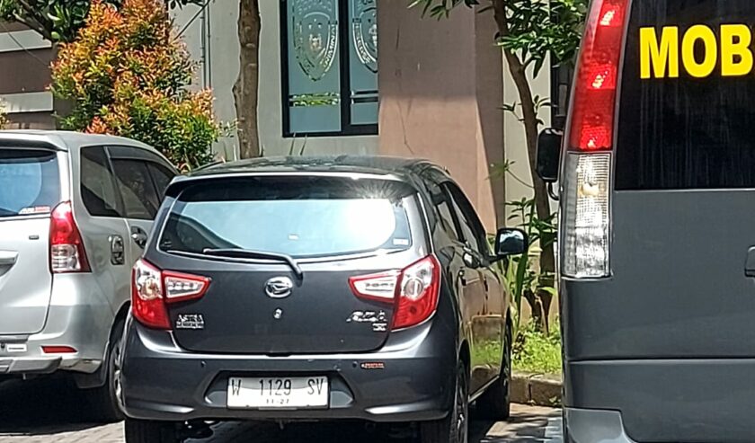 Mobil Ayla milik Merry pendengar Suara Surabaya saat diamankan di Mapolresta Sidoarjo, Kamis (9/4/2026). Foto: Merry via WA SS