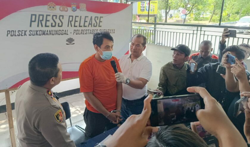 Polsek Sukomanunggal saat mengungkap kasus pencurian dengan kekerasan (curas) di Polsek Sukomanunggal, Surabaya, pada Sabtu (31/1/2026). Foto: Risky suarasurabaya.net