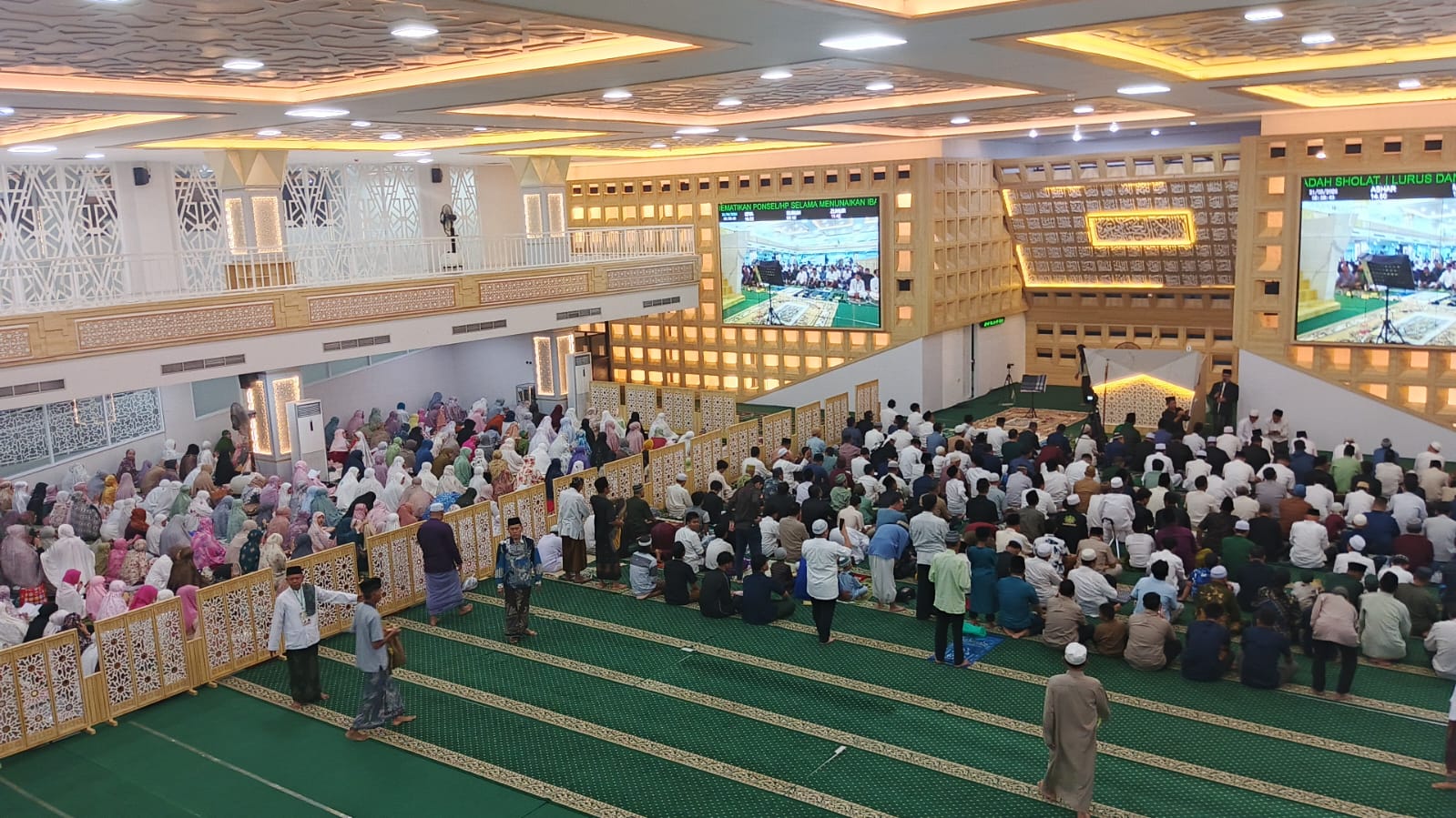 Ribuan jemaah memadati Masjid Raya Islamic Center yang berada di Jalan Raya Dukuh Kupang, Surabaya, untuk melaksanakan Salat Idulfitri 1447 H, Sabtu (21/3/2026) pagi.