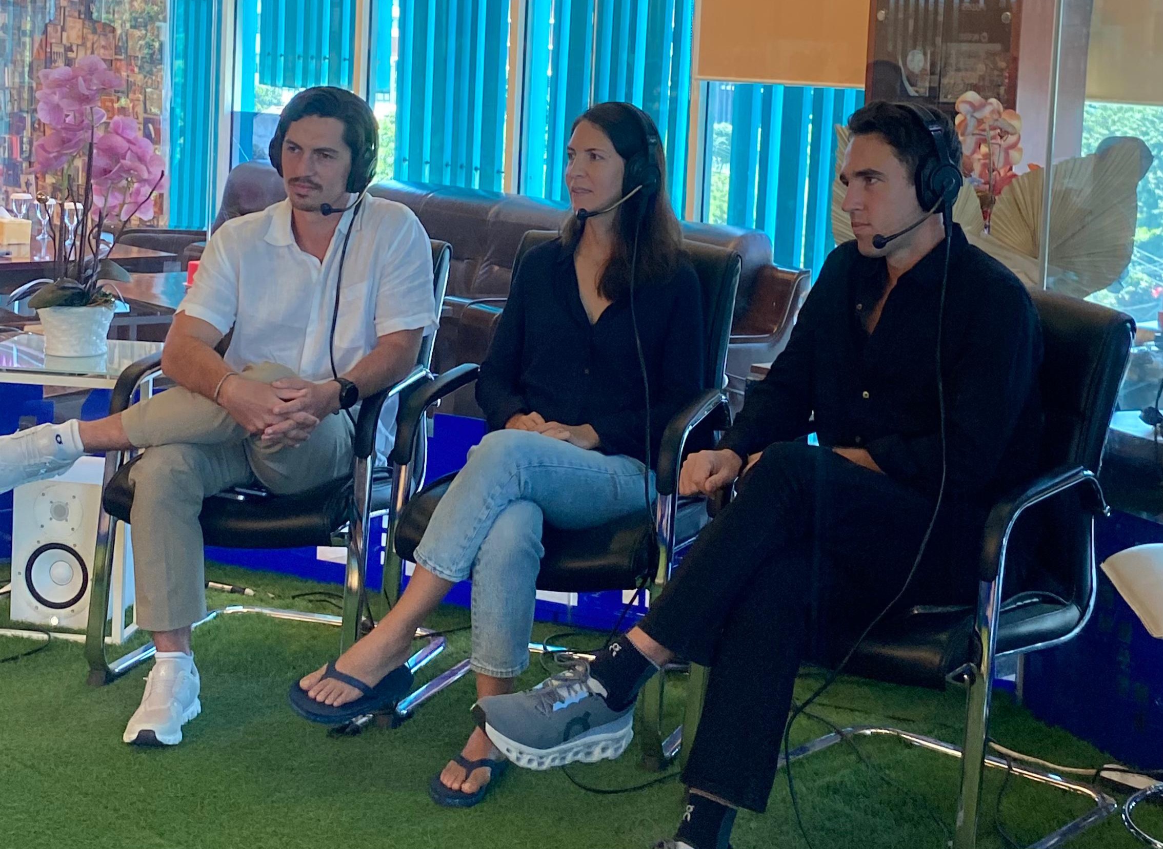 Tiga bersaudara, Gary, Kelly, dan Sam Bencheghib, co-founder Sungai Watch Indonesia, saat onair di Radio Suara Surabaya, Kamis (16/4/2026). Foto: Vina suarasurabaya.net
