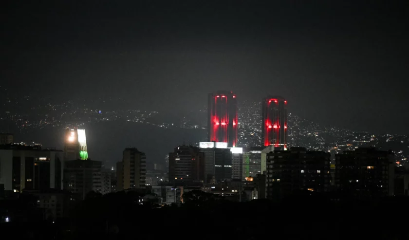 Pemandangan malam Caracas ibu kota Venezuela yang diambil setelah serangkaian ledakan terdengar pada 3 Januari 2026. Foto: AFP