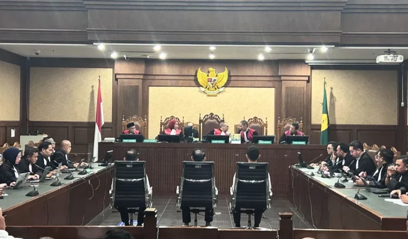 Tiga terdakwa kasus dugaan korupsi tata kelola minyak mentah dalam sidang pembacaan putusan majelis hakim, di Pengadilan Tipikor pada PN Jakpus, Kamis (26/2/2026). Foto: Antara