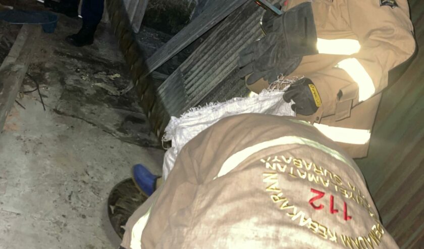 Ular Python 5 Meter Ditemukan di Belakang Rumah Warga Warugunung Surabaya, Dievakuasi Damkar Dini Hari