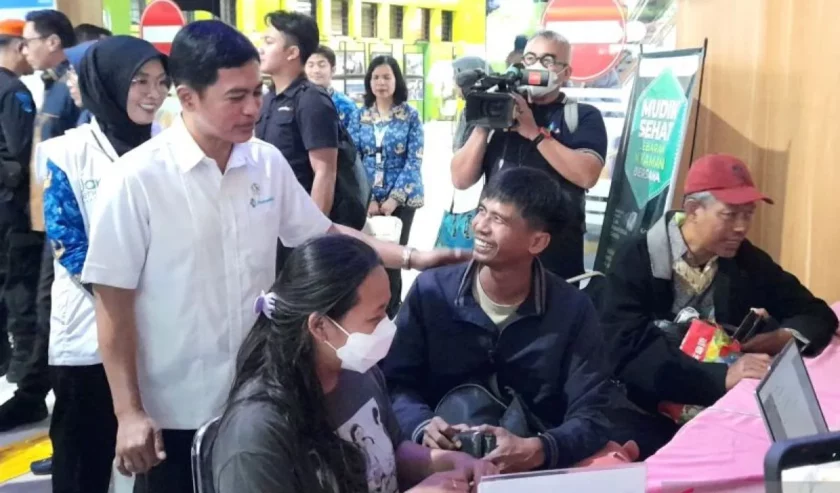 Dante Saksono Harbuwono Wamenkes (baju putih) saat memantau pemudik Cek Kesehatan Gratis (CKG) di Stasiun Gambir, Jakarta Pusat, Selasa (17/3/2026). Foto: Antara