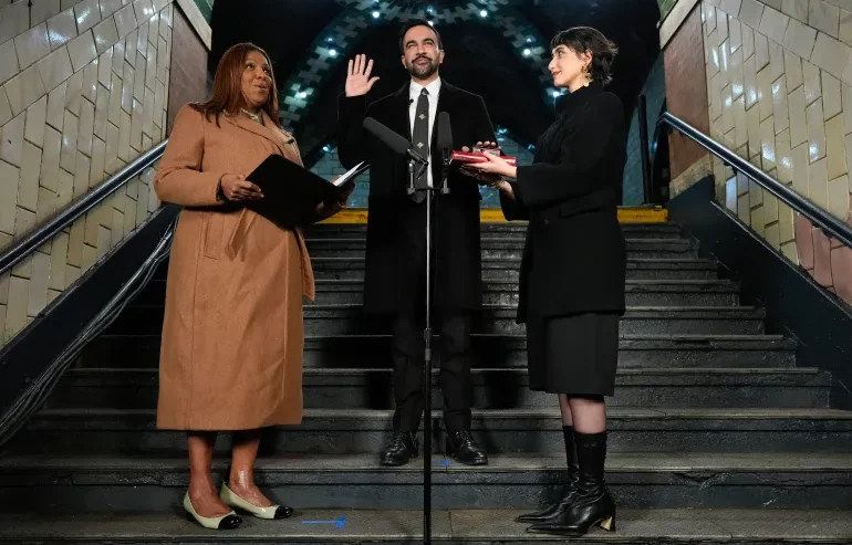 Prosesi pelantikan dipimpin oleh Letitia James Jaksa Agung Negara Bagian New York, yang juga dikenal sebagai sekutu politik Mamdani. Acara tersebut digelar di Old City Hall Station, salah satu stasiun metro tertua di New York yang terkenal dengan langit-langit lengkungnya yang ikonik.