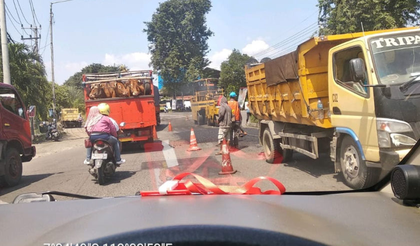 13.24: Balongbendo – Mojokerto MACET, imbas ada pengaspalan jalan. (odp-ts)