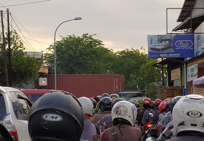 15.55: Lakasantri – Menganti MACET. Imbas ada trailler sedang ambil haluan. (odp-rt)