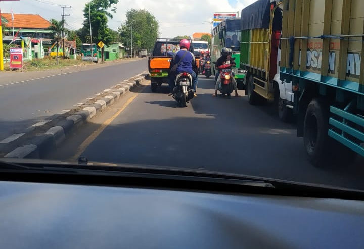 3.JL Raya Bakalan Balongbendo di kontraflow karena ada perbaikan jalan. (odp-rt)