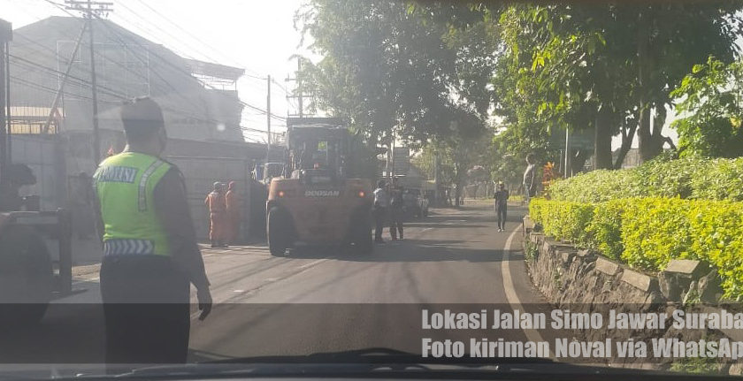 2. Arteri Porong arah Surabaya MACET, ada pengaspalan di lajur kanan;