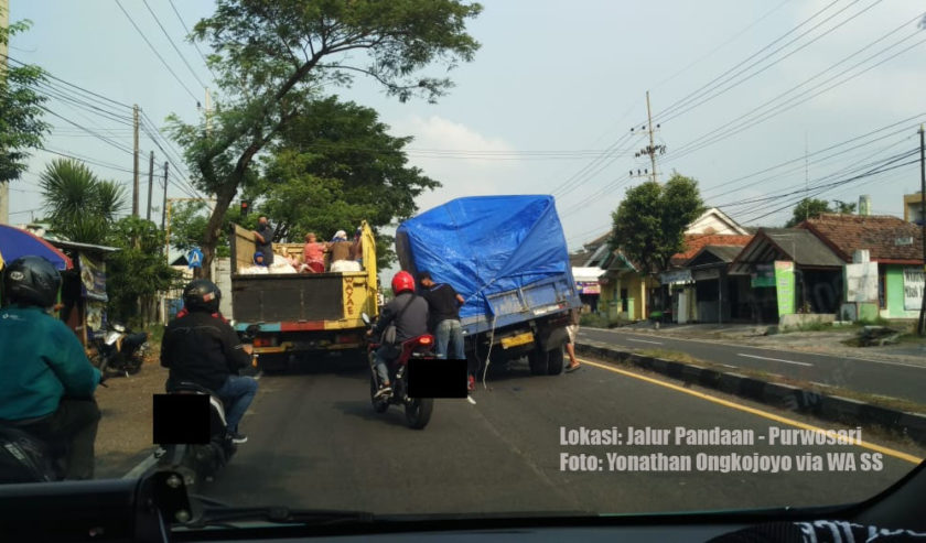 15.41: Info awal: Truk as patah di jalur Pandaan – Purwosari lajur kanan. Waspada, Kawan. (odp-rt)