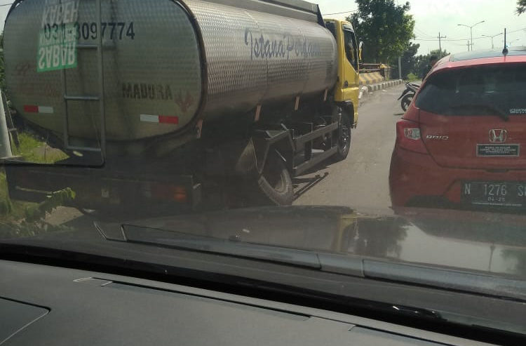 11.35: Info awal: Truk tangki as roda belakangnya patah setelah jembatan Arteri Baru Porong- Surabaya. Lalu lintas padat. (odp-rt)