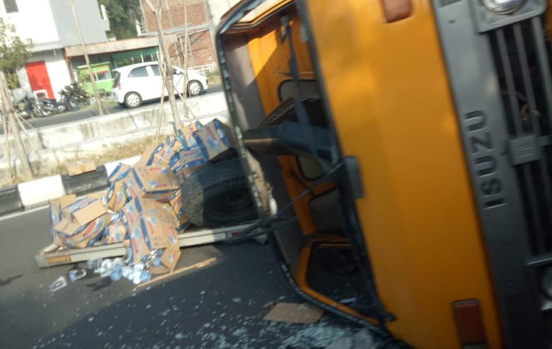8.23: Info awal: Truk muat air mineral terguling di MERR – Pondok Candra lajur kanan. Hanya tersisa lajur kiri yang bisa dilewati.