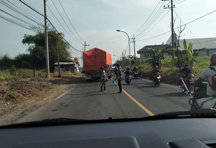 08.31: Truk bermasalah di Kedamean arah Gresik, posisi melintang. Belum ada petugas di lokasi. (odp-ts)