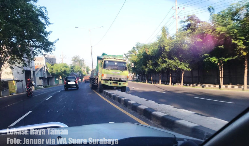 06.57: Info awal: Truk naik median jalan di Raya Taman Sidoarjo arah Surabaya. Sudah ada petugas di lokasi. (odp-ts)