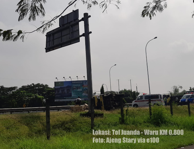 11.15: Update: Mobil box muat besi gerinda pecah ban lalu terguling di Tol Juanda – Waru KM 0.800. Ipda Mathius Jaka Panit PJR Tol Jatim 2 menjelaskan, ban truk sampai terlepas dan muatan truk sempat berceceran. Saat ini, mobil sudah dievakuasi dan sedang menunggu armada pengganti untuk mengangkut muatan. (odp-rt)