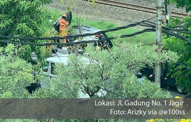 10.34: Update kecelakaan mobil yang terperosok ke taman di Jl. Gadung No. 1 Jagir/depan RSAL, sedang dilakukan evakuasi. Lalu lintas macet.(odp-ft)