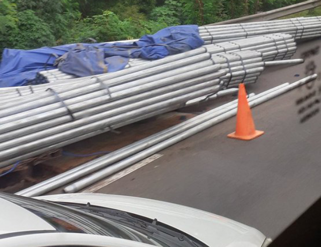 7.28: Info awal: Truk muat pipa, muatannya jatuh di lajur kiri Tol Waru -Perak KM 6.200. Hanya lajur kanan dan tengah yang bisa dilewati. Lalu lintas padat