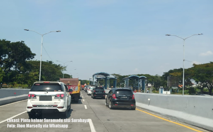10.53 : Ada penyekatan di Jembatan Suramadu bagi kendaraan dari Madura mengarah ke Surabaya. Ekor kemacetan hingga 500 meter. (odp-tn)