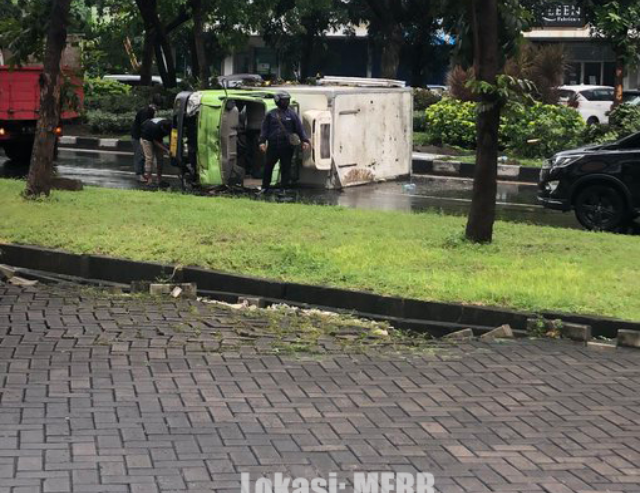 11.24: Info awal: Truk terguling di depan Ruko Icon MERR- Rungkut. Sudah ada Polisi di lokasi. (odp-rt)