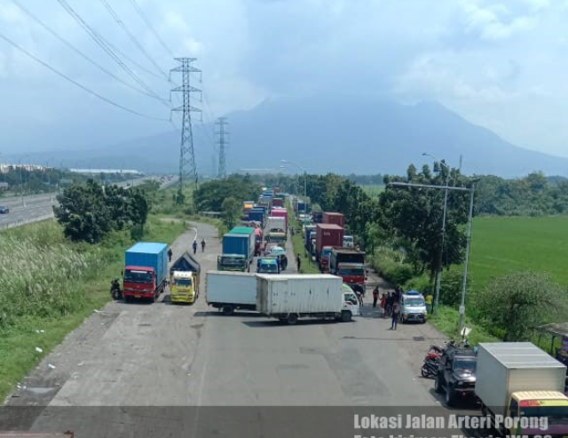 2. Jalan arteri Porong arah gate Tol Sidoarjo macet ada pemblokiran jalan oleh aksi mogok. (odp-tm)