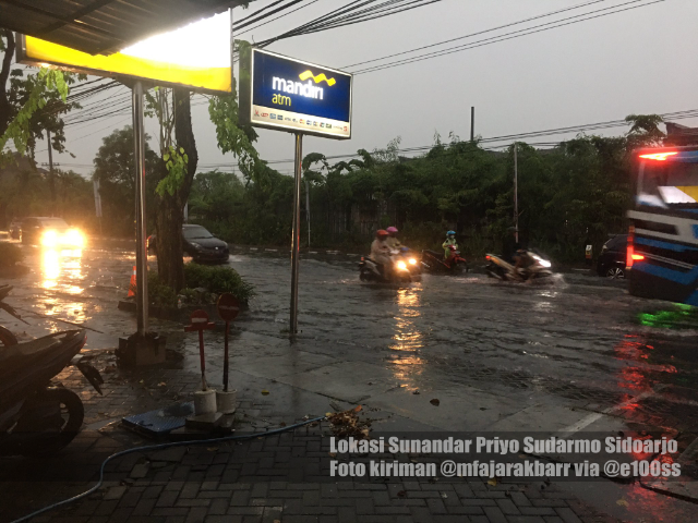 2. Waspada melintas di Jalan Sunandar Sidoarjo, jalannya banjir dan lalu lintas MACET. (odp-hm)