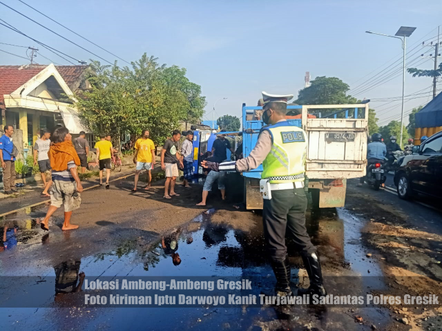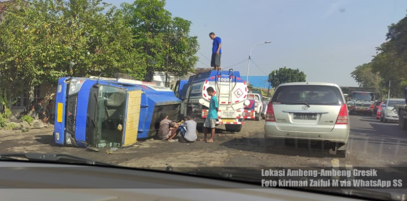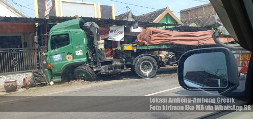 Kecelakaan Truk Box dan Sepeda Motor di Manyar Gresik