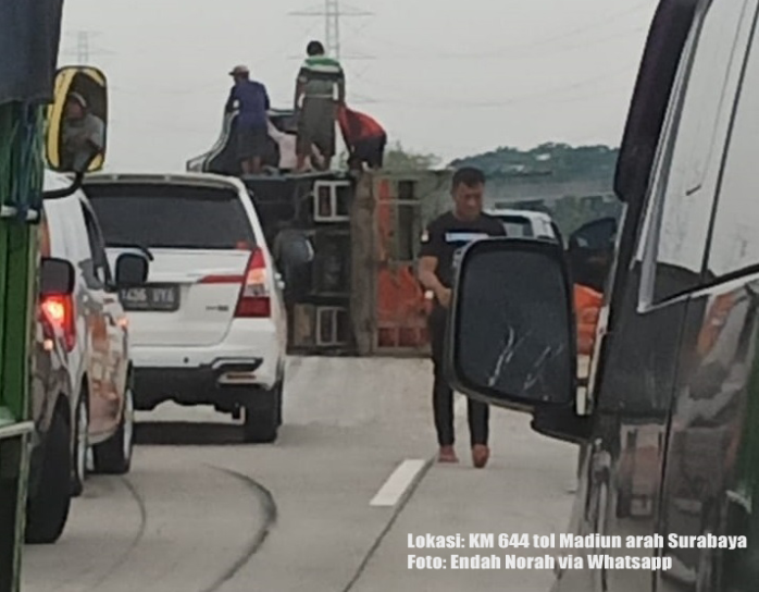 Truk Terguling di KM 644 Tol Madiun-Surabaya