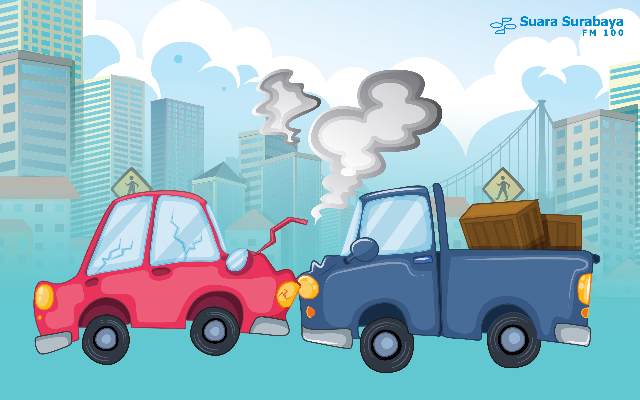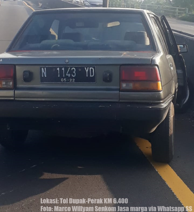 Mobil sedan yang menabrak median tengah Tol Dupak – Perak KM 6.400 diduga alami ban pecah