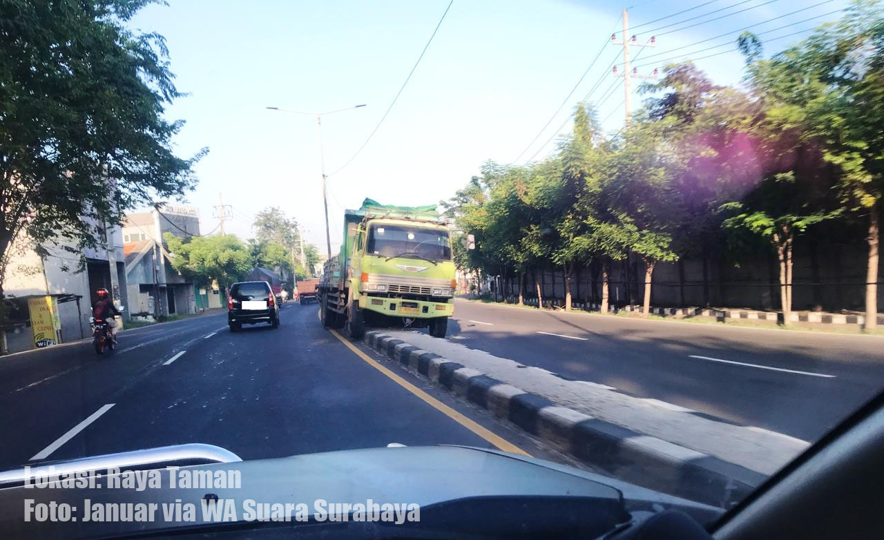 Update Truk yang naik median jalan di Raya Taman Sidoarjo