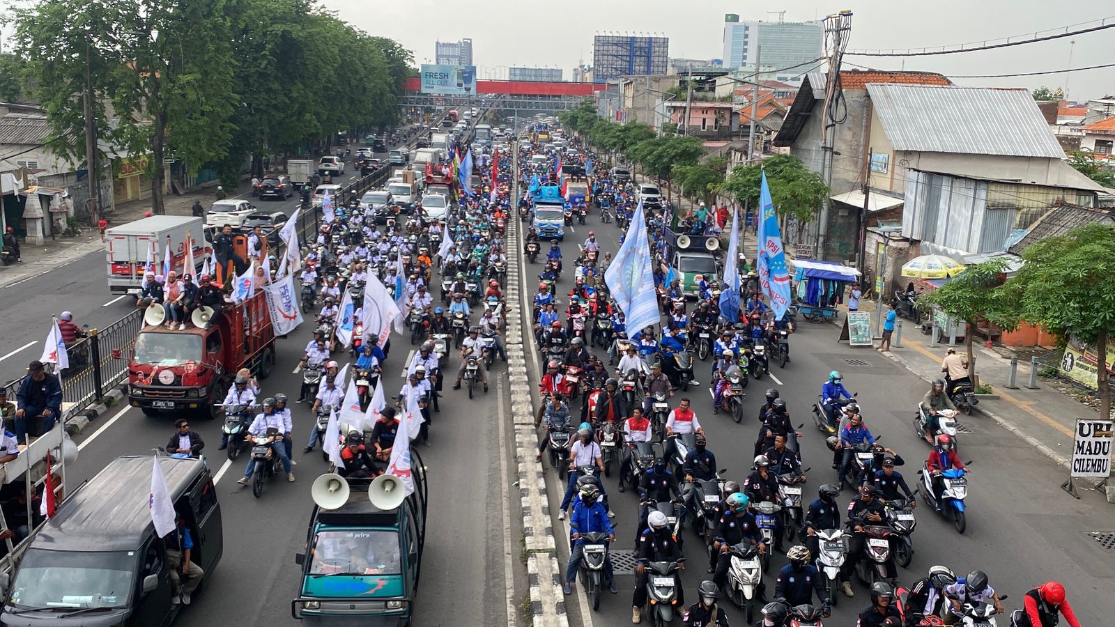 Ribuan Buruh Padati Jalan Ahmad Yani, Lalu Lintas Menuju Pusat Kota Surabaya Tersendat