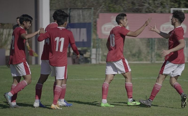 Ilustrasi. Para pemain tim nasional U-19 Indonesia merayakan kemenangan atas Hajduk Split dalam laga uji coba di Stadion Sloga Mravince, Split, Kroasia, Selasa (20/10/2020). Foto: PSSI