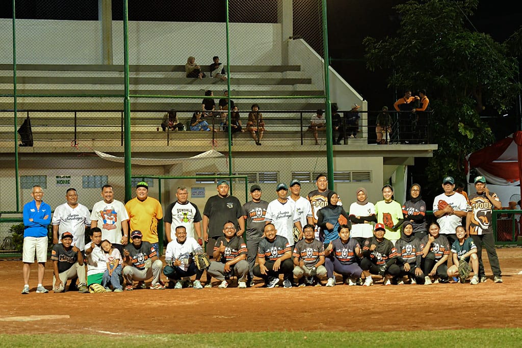 Para pemain softball Suara Surabaya (SS) selepas pertandingan di Lapangan Dharmawangsa Surabaya pada Minggu (30/6/2024) malam. Foto: Tim Softball SS