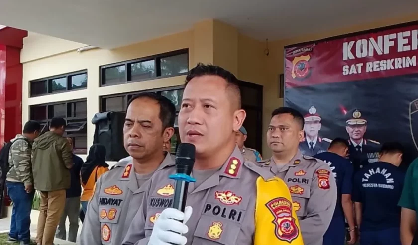 Kombes Pol Kusworo Wibowo Kapolresta Bandung saat ungkap kasus pengeroyokan terhadap steward oleh oknum suporter di Mapolresta Bandung, Kabupaten Bandung, Jawa Barat, Kamis (26/9/2024). Foto: Antara