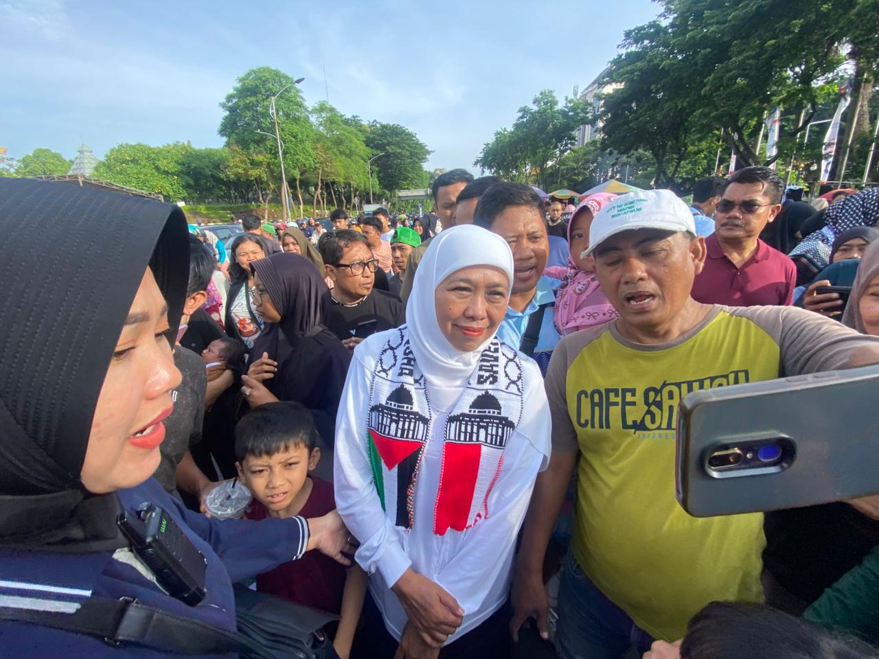 Kemudian Khofifah juga turut mendoakan saudara-saudara di Palestina yang masih berada di pengungsian agar selalu diberi keselamatan dan perlindungan.