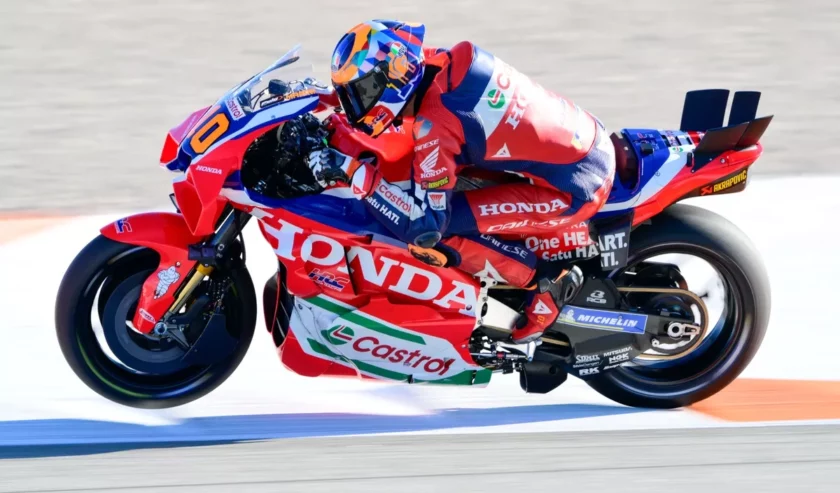 Tim pabrikan Honda merupakan salah satu yang menggunakan winglet yang terpasang di belakang kaki pembalap. Foto: Motorsport