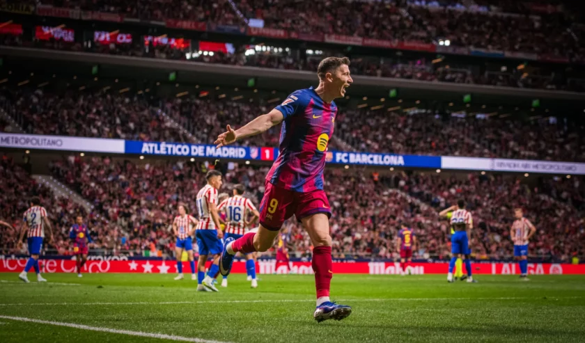 Robert Lewandowski mencetak gol penentu saat Barcelona menundukkan Atletico Madrid dengan skor 2-1, Minggu (5/4/2026) dini hari WIB. Foto: Barcelona