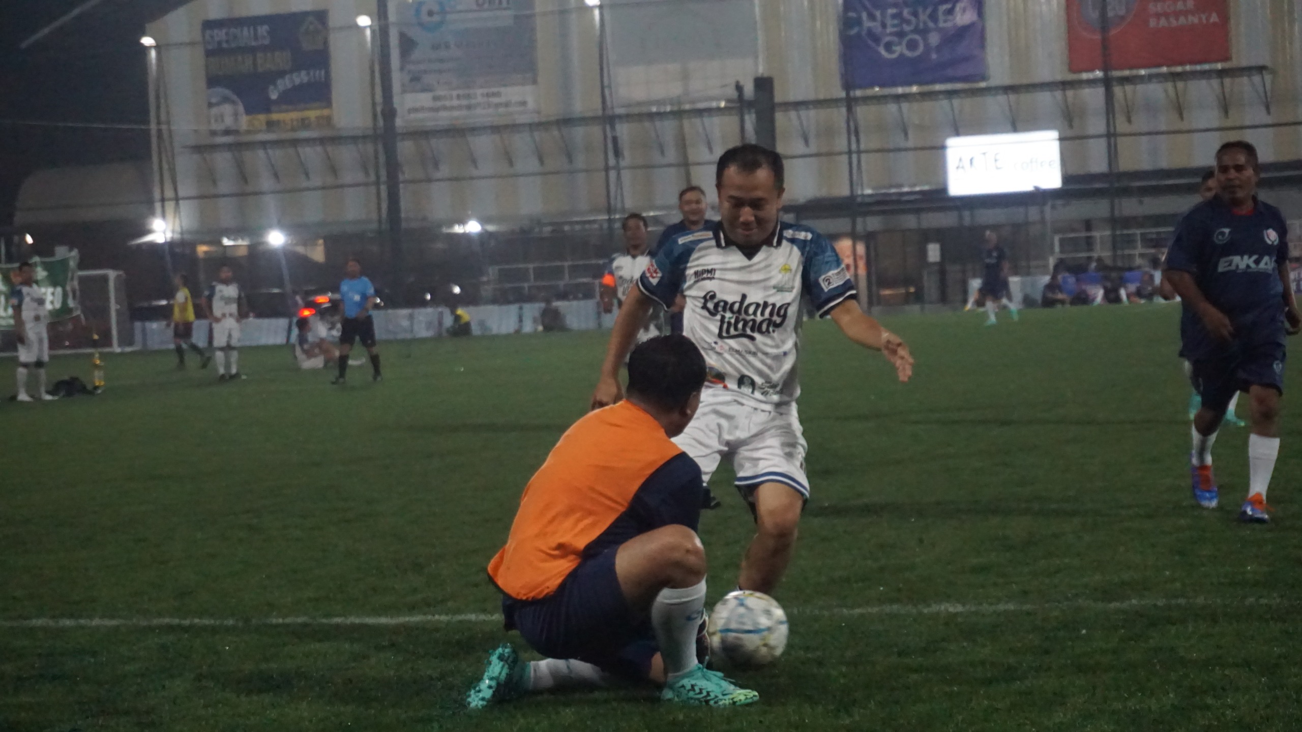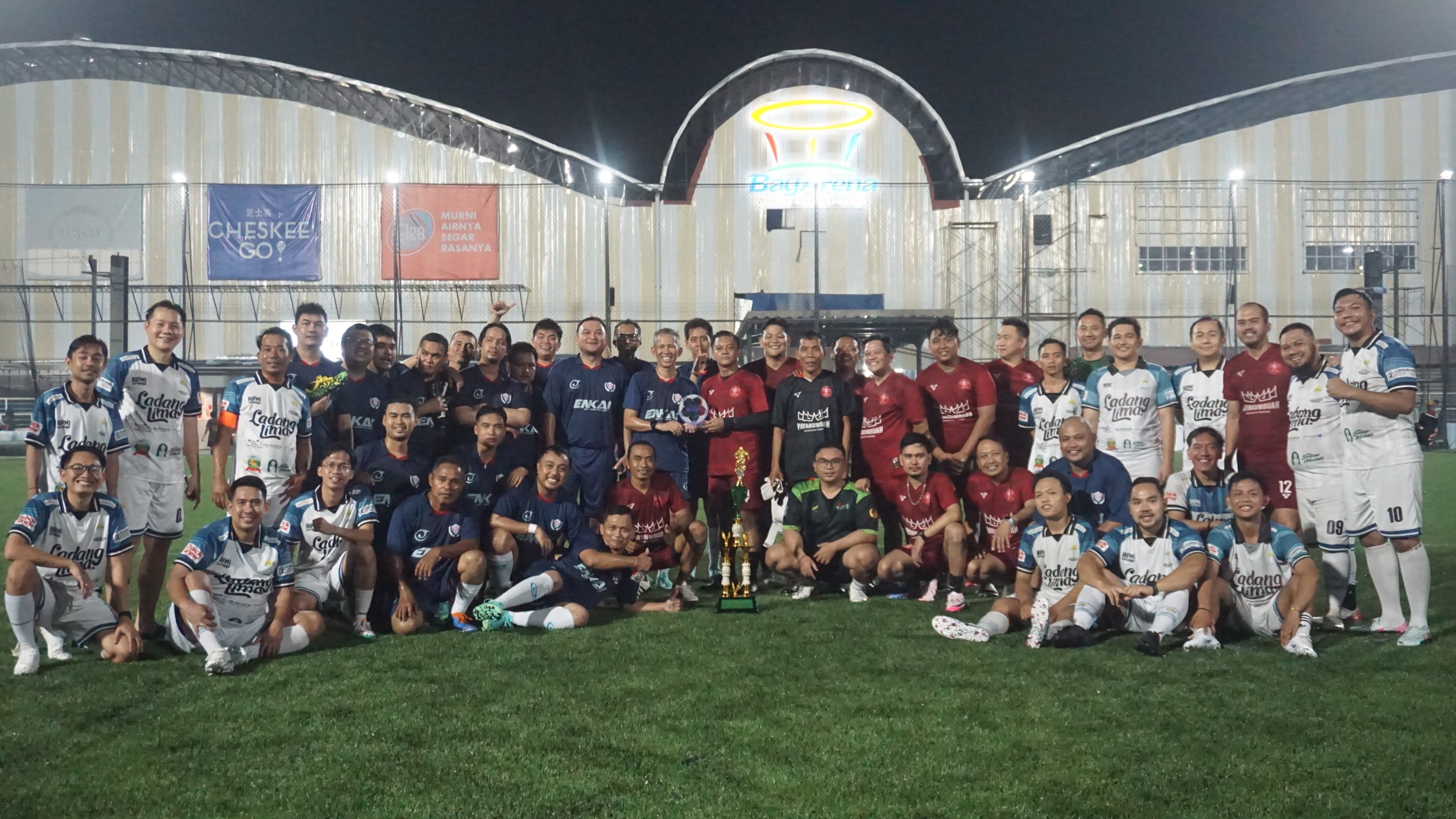 Turnamen mini soccer bertajuk Trofeo Persaudaraan yang diikuti Enkai SSFM Football Club (FC), HIPMI Kota Surabaya, dan KONI Surabaya digelar di Bay Arena Kenjeran, Rabu (11/2/2026) malam.